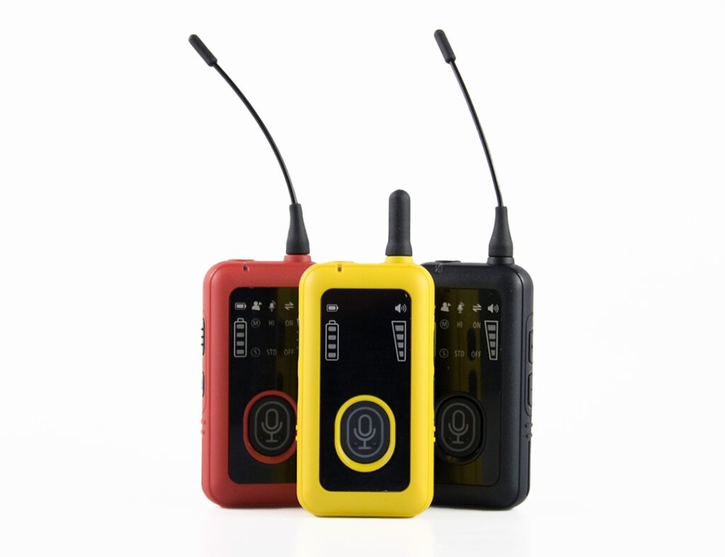 Kolorowa i oryginalna obudowa systemu tourguide jest wykonana z trwałego i łatwego do dezynfekcji tworzywa. Odbiorniki i nadajniki nie mają wyświetlaczy, co sprawia, że są one mniej narażone na uszkodzenia. Intuicyjne diody w urządzeniach wskazują na poziom naładowania baterii, a podświetlane ikony ułatwiają obsługę systemu.